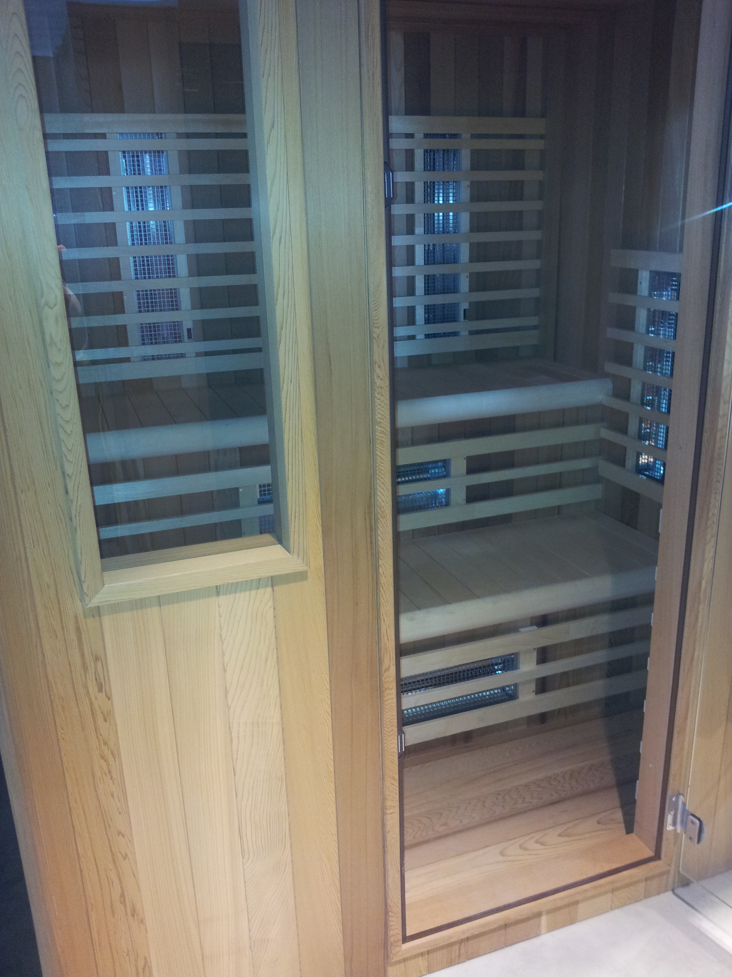 Pour votre sauna infrarouge ou en ajout dans pour votre sauna avec four, cette lampe infrarouge au bourrage d'oxyde de magnésium 650 watts prévue pour l'installation dans l'angle de votre cabine infrarouge ou de votre sauna, comprenant un récepteur d'aluminium floqué avec 95 % de réflexion et une grille de protection satinée en couleur standard rouge, existe en brun ou gris clair sur demande.