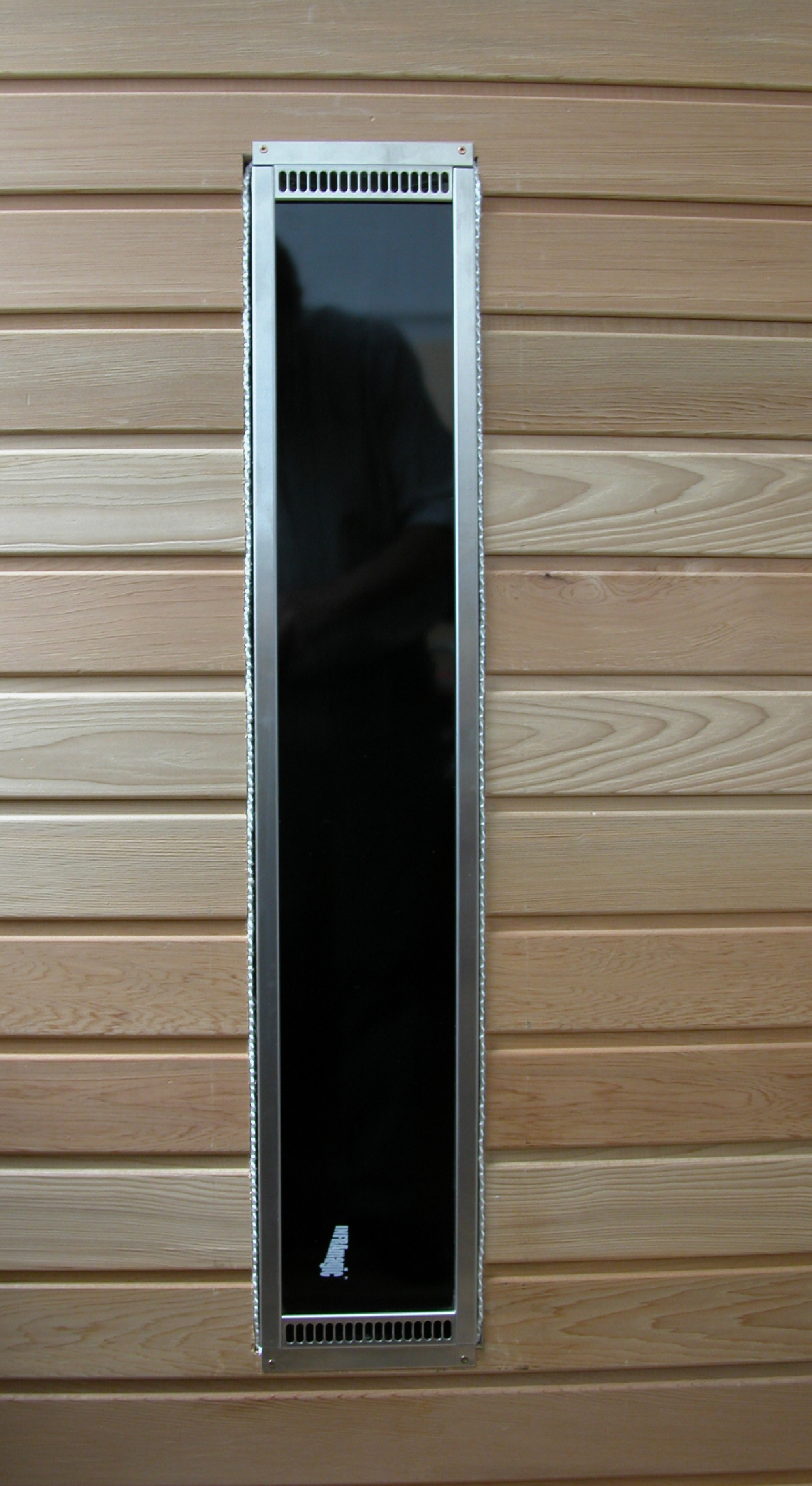 Lampe infrarouge Vitae spectre complet Thermolight 350 watts avec façade vitrocéramique rouge ou blanche au choix, ventilation façade haute et basse, cadre en aluminium, câble de 3m en silicone, fiche GST18i, vis de fixation, bande de protection incendie. Elle est à encastrer dans la cloison. Elle pourrait être posée sans encastrement, vous avez besoin alors d’un module.