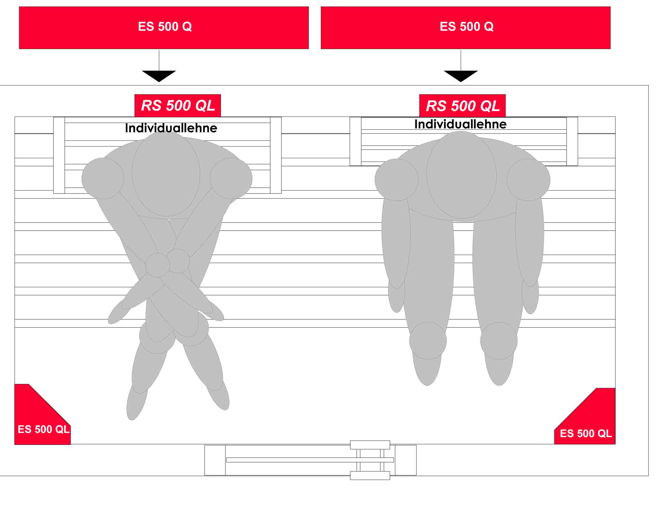 Plan d'une cabine infrarouge 2 personnes 1,70x1,20 avec des lampes spectre complet