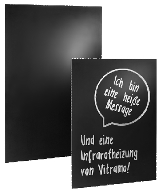 Radiateur Vitramo infrarouge long mur ardoise, une ardoise pratique pour noter les courses et un radiateur infrarouge long 600 watts 90x60x2.8cm pour chauffer une chambre ou votre cuisine.
